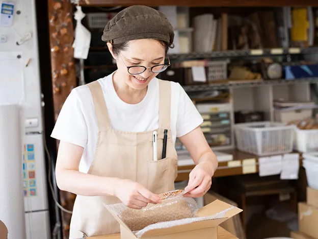 箱を開けた瞬間に「きれい」と思っていただけるよう包装に工夫を凝らし、開けやすさやごみの少なさにも気を配っています。ご注文ごとに添える手書きのメッセージも、開封の喜びを少しでも大きくしたいからです。