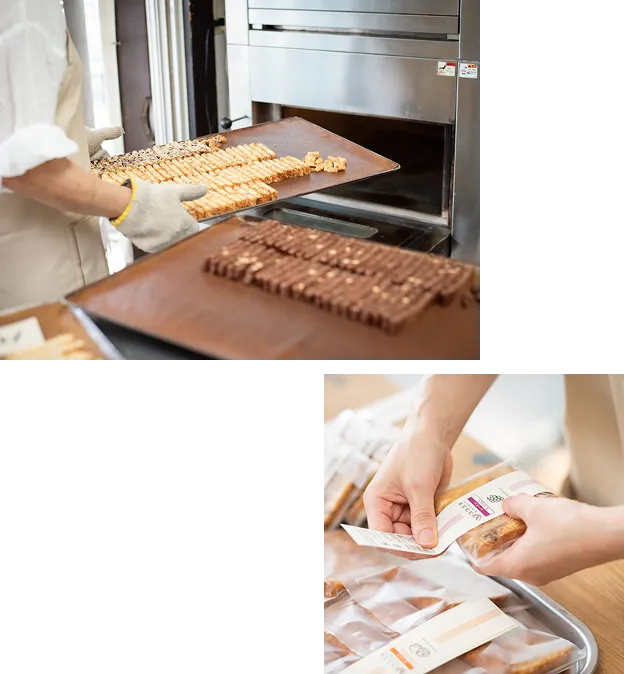 一人ひとりが自らの仕事に責任を持ち、次のスタッフへとバトンを渡す。すべての工程がひとつにつながって、ココユタのビスコッティが完成します。